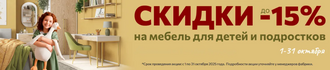 -15% на всю корпусную мебель и мягкие кровати при заказе от 90 000 руб.